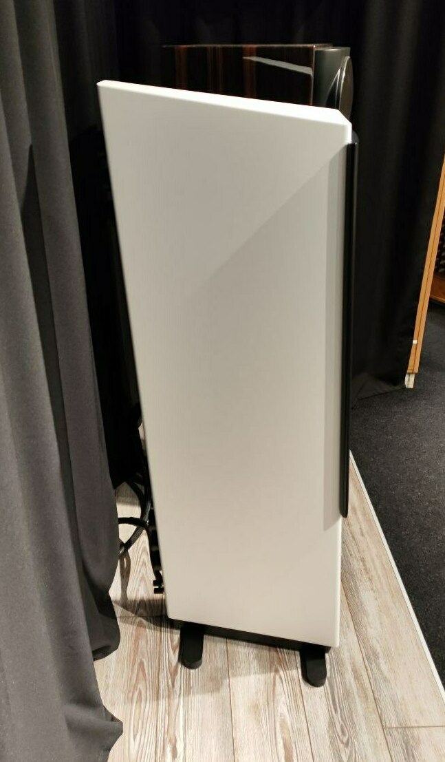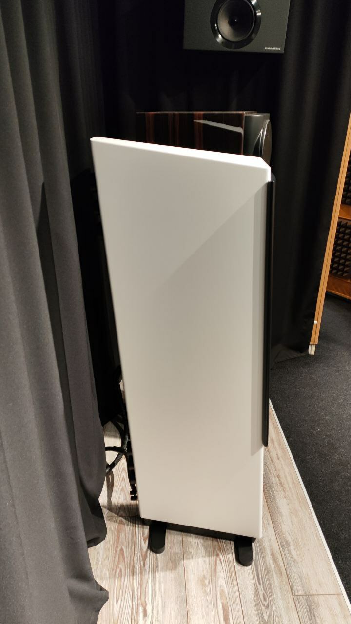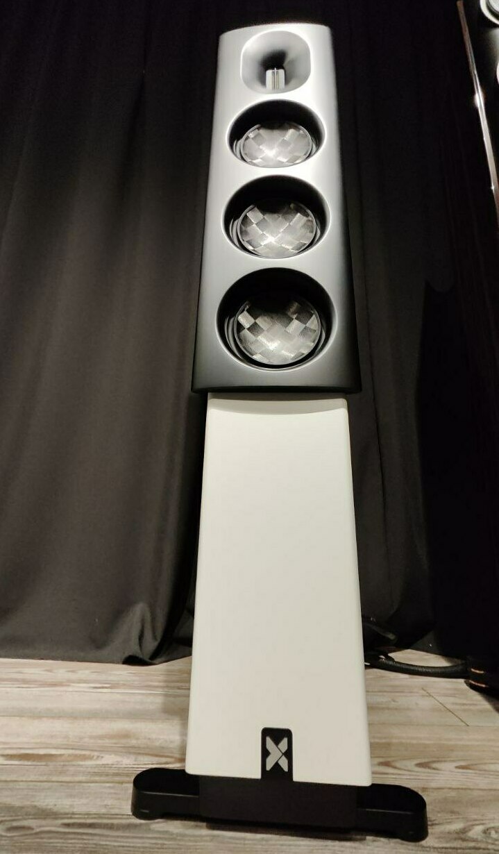 2,5-полосная напольная АС. Динамики: планарный ленточный твитер Axxess, один СЧ/НЧ + два НЧ трехслойных динамика Axxess 4.5" (два слоя кевлара + слой арамидных сот между ними, частотный диапазон: 35-22000Гц, чувствительность: 88дБ, импеданс: 4Ом, рекомендованный усилитель: выше 50Вт, исполнение: белый сатин, размер: В1250 х Ш300 х Г410 мм, вес: 30,2 кг